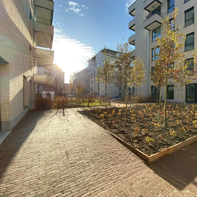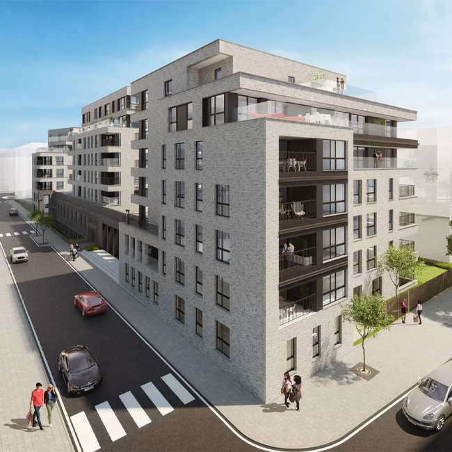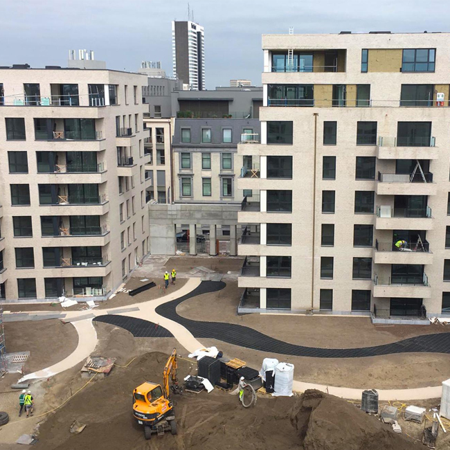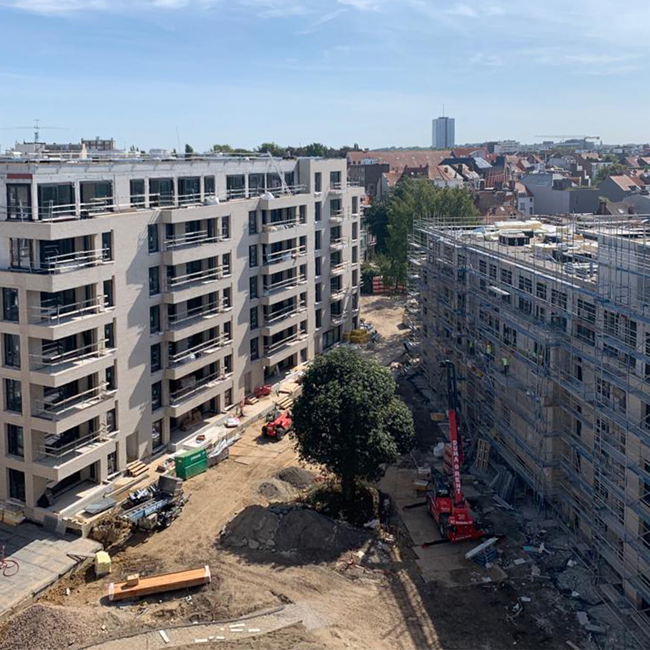 Construção do projeto residencial Ernest Solvay, composto por seis edifícios de até oito andares e dois níveis de estacionamento subterrâneo. O empreendimento inclui 198 apartamentos de luxo, espaços comerciais e uma creche, com os edifícios separados por jardins paisagísticos.